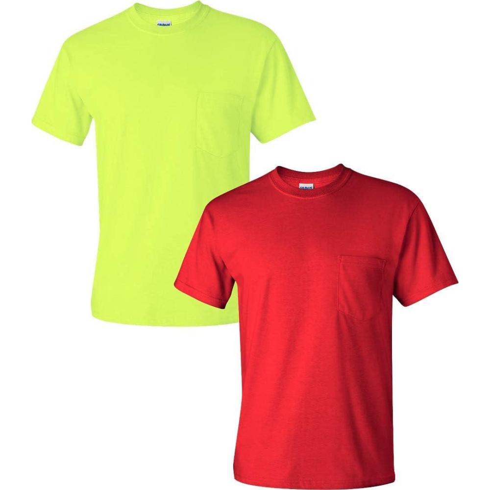 Gildan Adult Ultra Cotton T-Shirt with Pocket, Style G2300, 2-Pack(Safetygreen/Red)