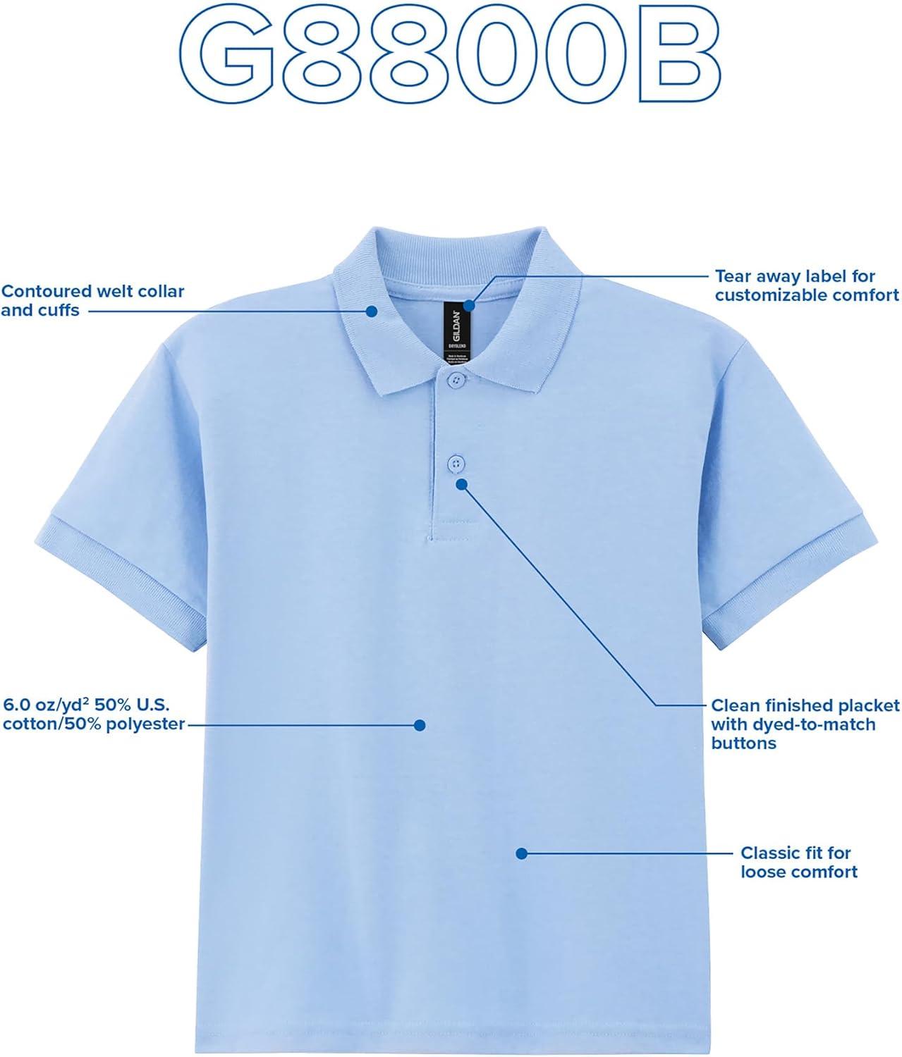 Introducing the Gildan DryBlend Youth Polo, Style G8800B, your new wardrobe go-to. Crafted from a 50% cotton and 50% polyester blend, it features a sleek contoured welt collar, matching cuffs, and a placket with dyed-to-match buttons. Its moisture-wicking fabric ensures day-long comfort and coolness. Combining style with durability, this style is designed to elevate your everyday fashion becoming a staple in your collection.