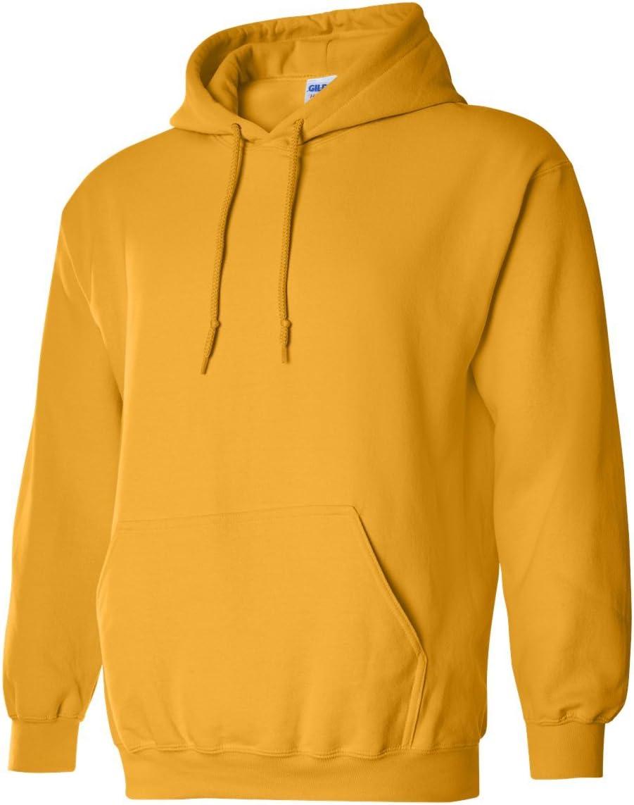Gildan Men’s Heavy Blend Drawcord Hooded Sweatshirt, Safety Pink(Standard Gold)