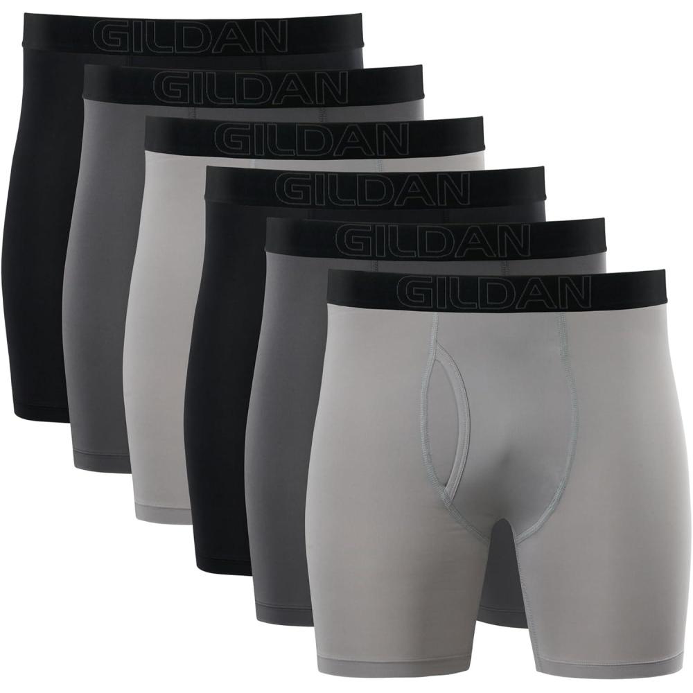 Gildan mens Performance Underwear Boxer Briefs(Black/Charcoal/Opal Grey (6-pack))