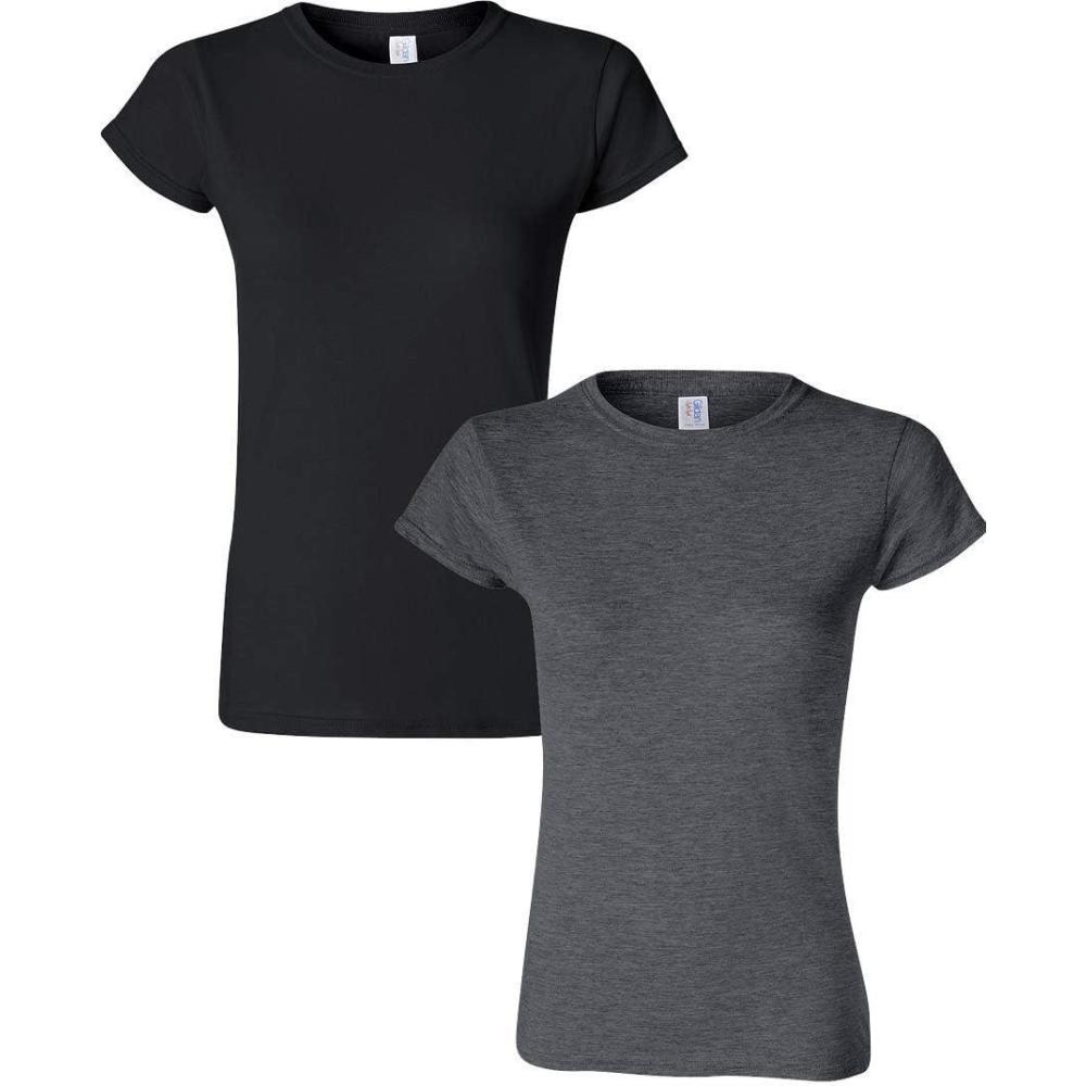 Gildan Womens Softstyle Cotton T-Shirt, Style G64000l, Multipack(Black+darkheather)
